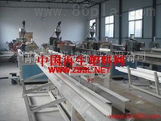 塑钢门窗异型材生产线采用PVC粉料制造各种塑料门窗异型材、装饰型材等。参照国外最新技术,对机组进行优化设计,具有塑化均匀、产量高,使用寿命长等优点,该机组由锥型双螺杆挤出机、真空定型台、牵引机,切割机、复膜机、翻料架等组成,主机采用进口直流/交流变频拖动,切割机采用进口PLC控制,温控仪表选用日本RKC公司产品,辅机真空泵和牵引电机采用优质产品,维护简便